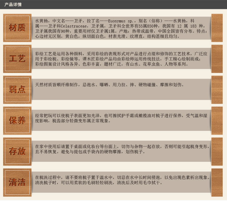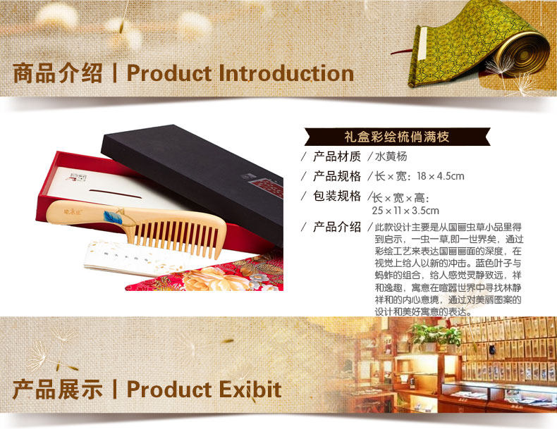谭木匠 礼盒彩绘梳俏满枝天然水黄杨木梳子