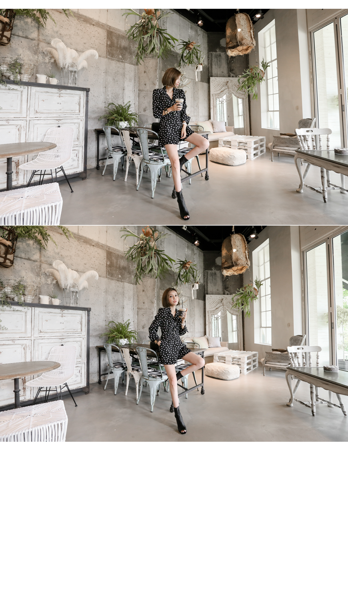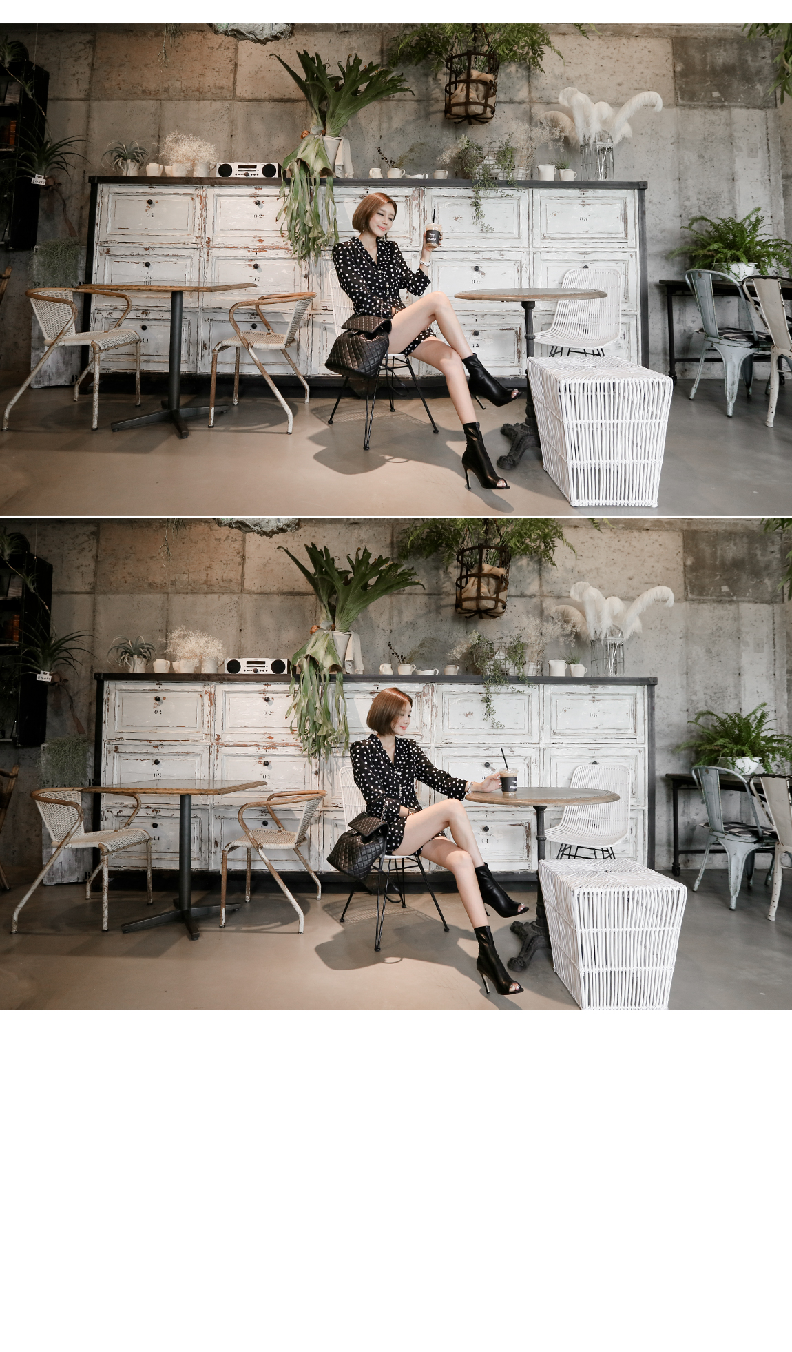 깔끔한 자켓 디자인의 상의로 여리여리한 무드를 보여주어