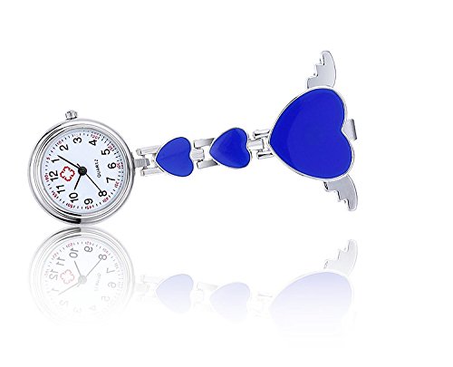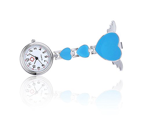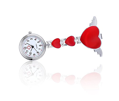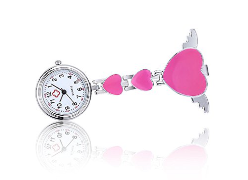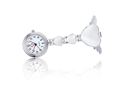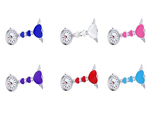 -. Title : Quartz Movement Nurse Fob Watch with Heart Angle Wing Clip Pin on Brooch Hanging Pocket Watch (Pack of 6)