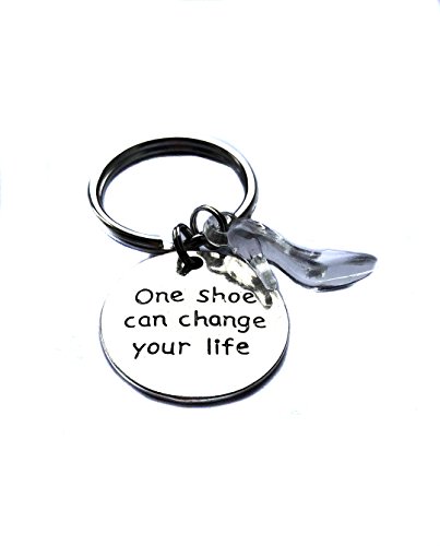 Studio : Heart Projects Publisher : Heart Projects Binding : Jewelry Product Description Keychain made with an antique silver-plated "pewter" (zinc-based alloy), 24x24x1.7mm (0.94"x0.94") Cinderella inspired quote "One Shoe Can Change Your Life". Makes a great inspirational gift! 0