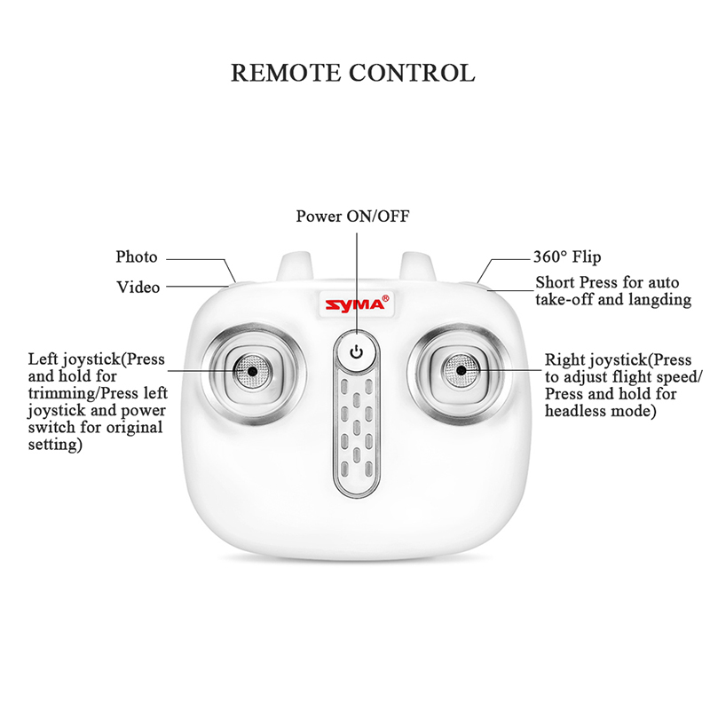 Function: barometer set height, 3D flips, CF mode, One-key take- off/landing, up, down, left, right, forward, backward
