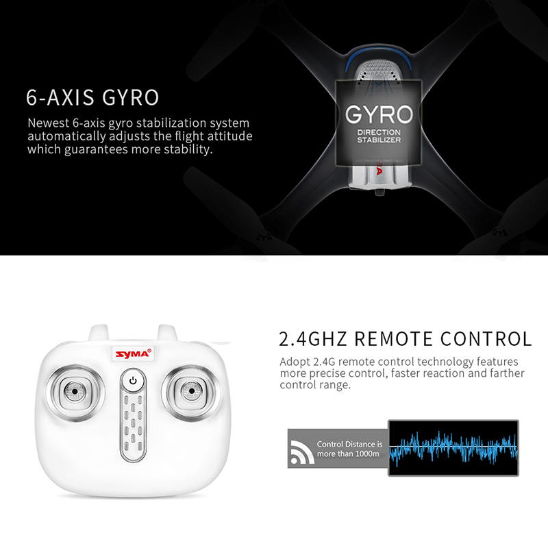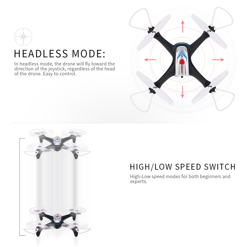 H/L speed mode, 3D eversion, headless mode, One-key taking off/landing function for cool flying