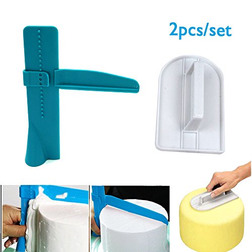 UoUo Adjustable cake scraper smoother, Fondant Smoothing Tool Cake Decorate Smoother Cake Scraper Icing Piping Cream Spatula Edges Set (2 Pack)