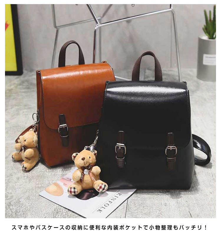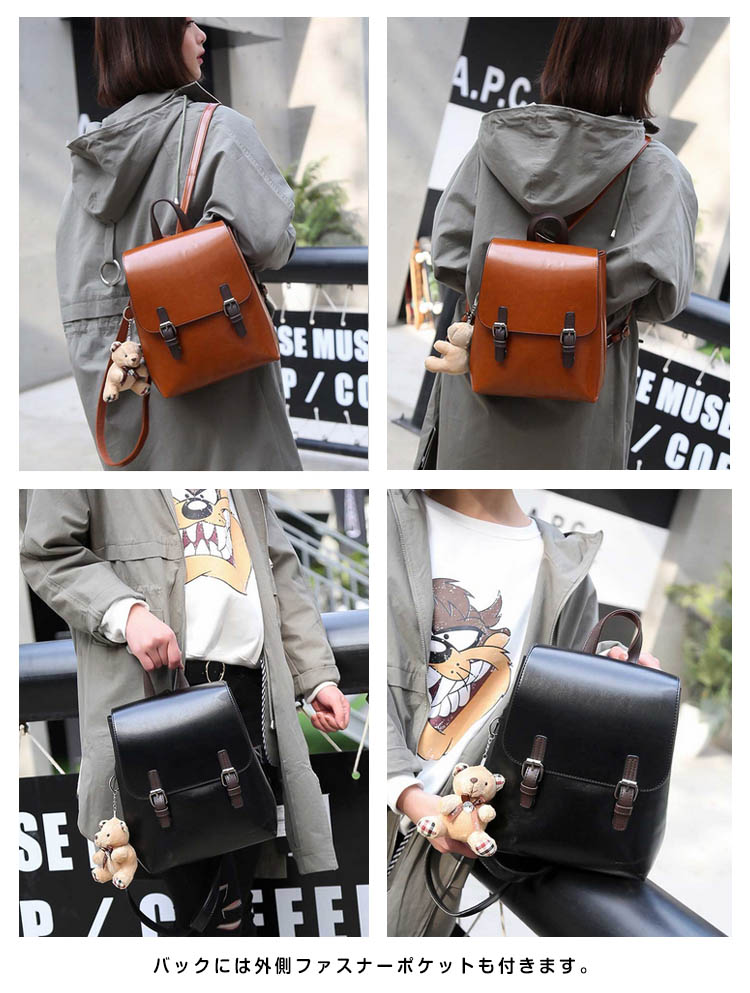 | 流行りの森ガール・山ガールにピッタリ★大カワイイ合皮ミニリュックサックが登場。チラ見えのベルトデザインもさりげなくポイントに…バックには外側ファスナーポケットも付きます。スマホやパスケースの収納に便利な内装ポケットで小物整理もバッチリ!シンプルなデザインがどんなコーデにもあわせやすく、大活躍間違いなしのアイテム! | |