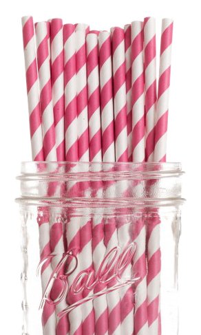 [Product Information]- Pack of 100 Retro Fuschia Striped Paper Drinking Straws (7-3/4-inch long)-Great for any occasion