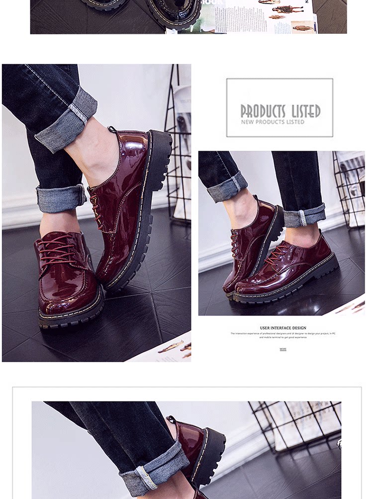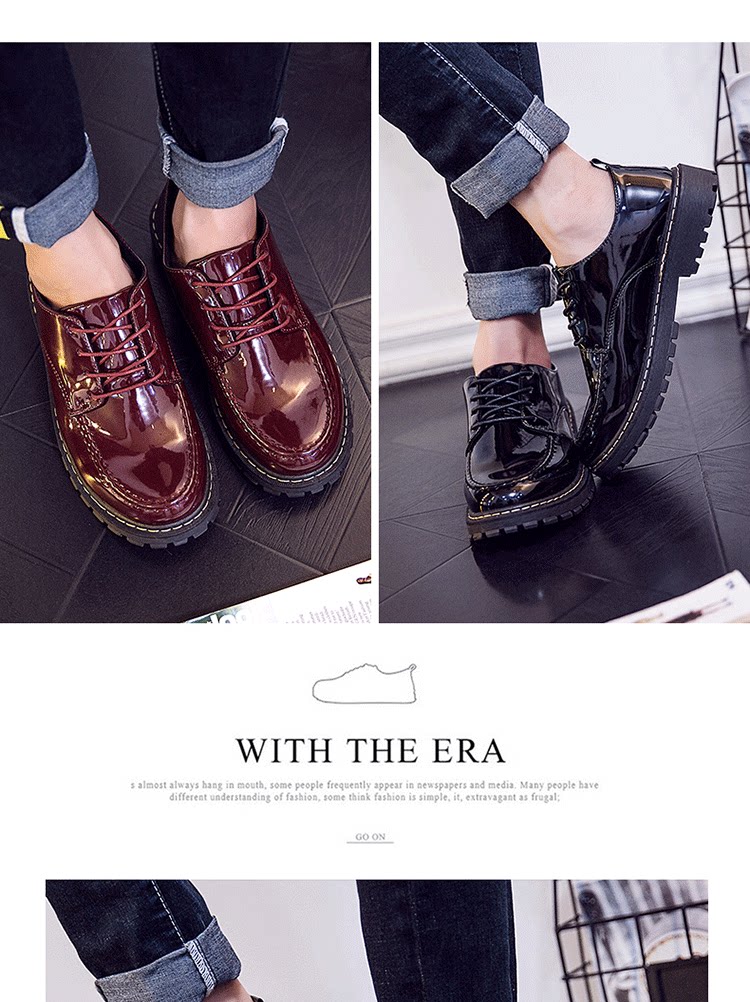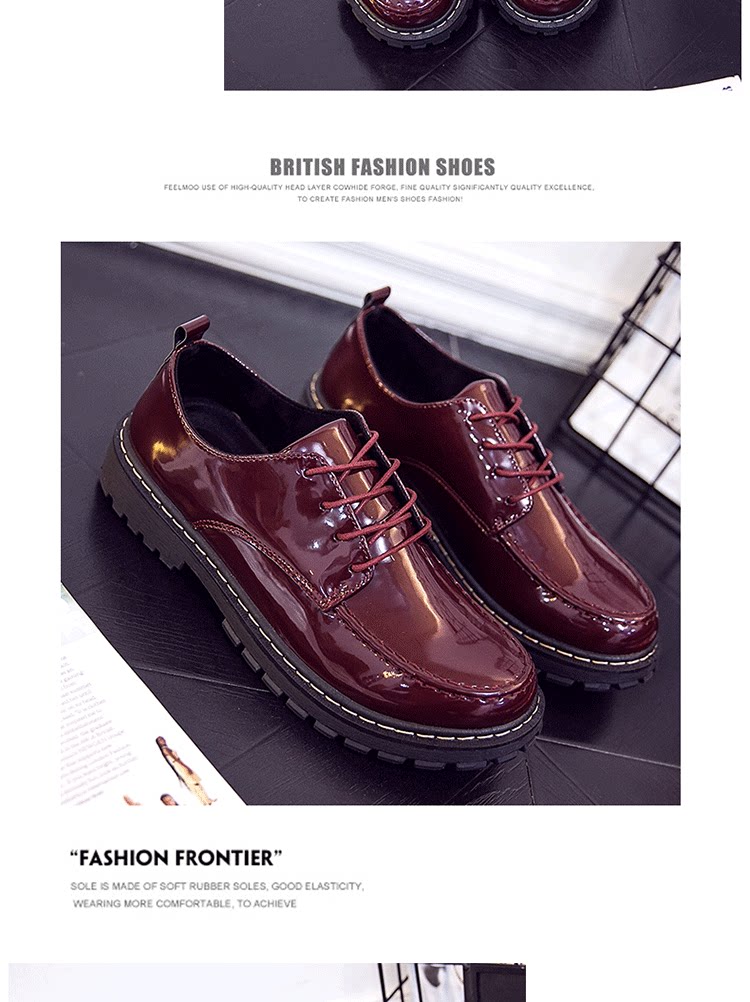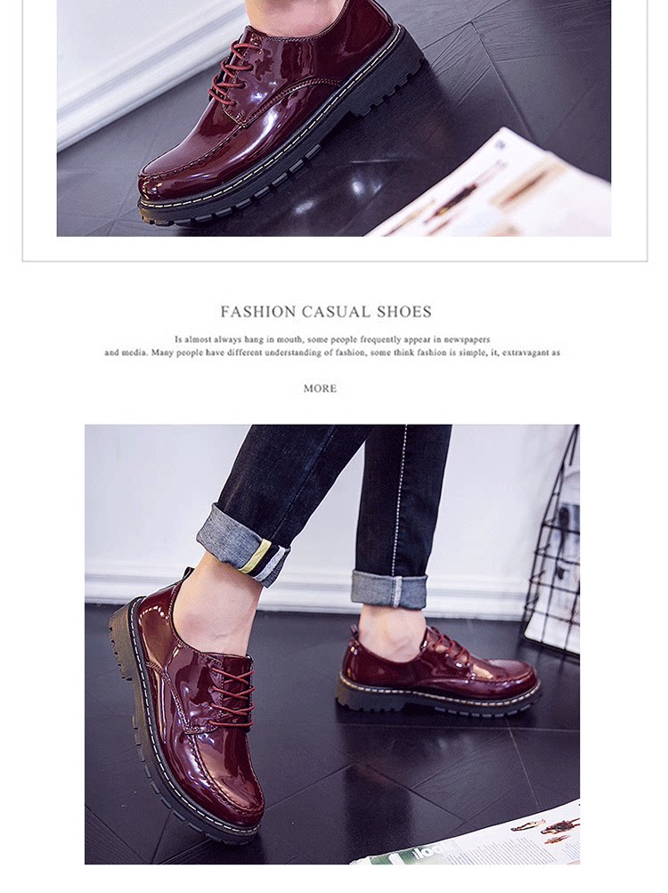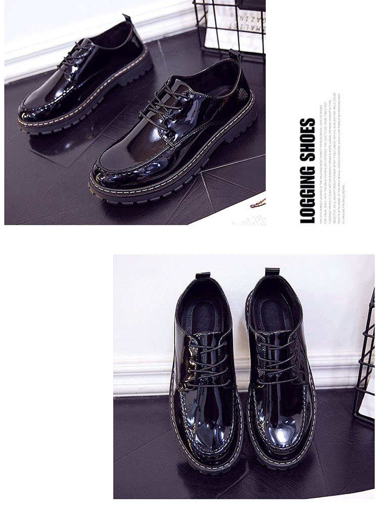 短靴男秋季英伦大头工装马丁靴低帮休闲皮鞋漆皮亮面板鞋男靴皮靴
