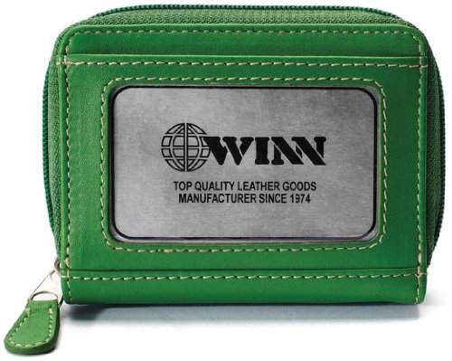 Studio : Winn International Publisher : Winn International Binding : Apparel Product Description 94621 Color: Black Features: -Card holder. -Material: Leather. -Cowhide napa leather zip-around card holder. -Leather zipper pull tab and I.D. window on one side of the exterior. Product Type: -Business Card Holder. Gender: -Unisex. Material: -Leather. Color: -Black. Color: -Red. Color: -Blue. Color: -Green. Generic Specifications: -Accordion card slot holder with 11 available slots. Generic Dimensions: -3" H x 4" W x 1" D. Dimensions: Overall Height - Top to Bottom: -3 Inches. Folded Width - Side to Side: -4 Inches. Thickness when Folded: -1 Inches. Overall Product Weight: -0.17 Pounds. 0