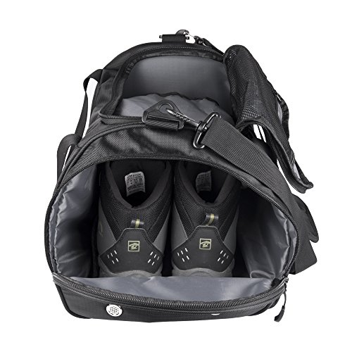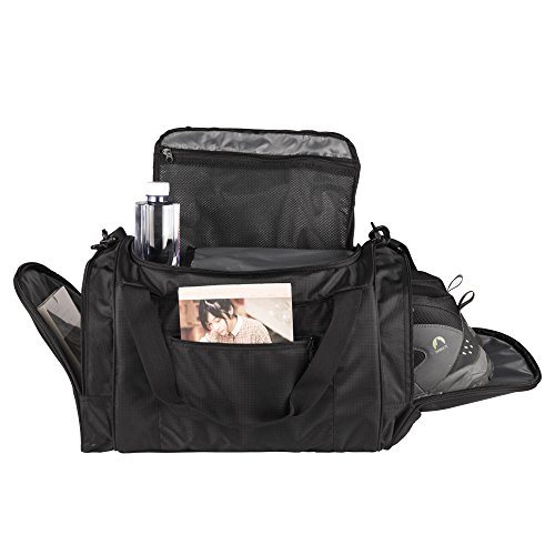 -. Feature : LARGE CAPACITY:Dimensions 19×9.8×10.6 in ,Just the Right Size.The Sports Duffel Bag is roomy enough to pack everything you need for the gym or a weekend trip. / MULTI-FUNCTION:One main pouch with 3 inside compartments,One Shoe Pouch,One Side Pouch, Front Zipper Compartment,you can keep your things organized in The Sports Duffel Bag. / HEAVY-DUTY:Made of high quality polyester to prevent tearing and scratching,use sturdy Zippers and operates smoothly,ensures The Sportsl Duffel Bag has a Long-Lasting usage. / FASHION AND LIGHTWEIGHT:Classic Black without any patterns,very Simple but never out of date.Make the Sportsl Duffel Bag Light and Flexible,Fits men and women. / THOUGHTFUL DESIGN: Adjustable Shoulder Strap with the soft PU leather handle,Foot pegs will prevent the bottom from getting dirty or scratched while The Sports Duffel Bag resting on the floor.