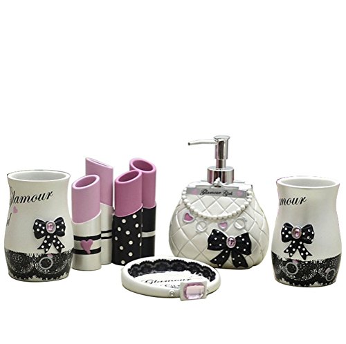 -. Title : VIC-Decor,High Grade 5 Pieces Bathroom Accessory Set Present Resin Sanitary Ware,Home Decor,Bath Ideas,Home Present : Girl Lipsticks Bow