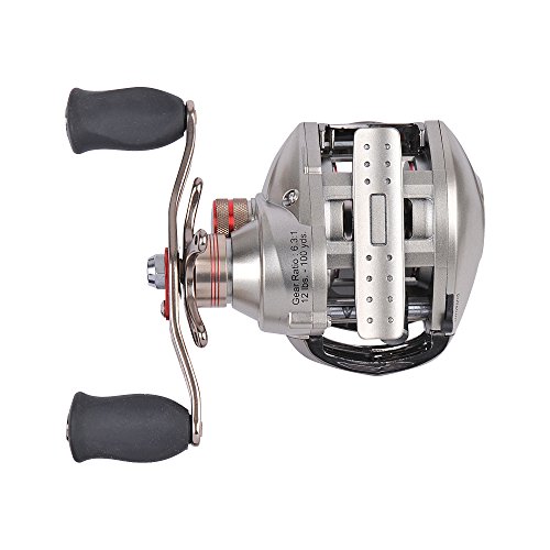-. Feature : CNC machined aluminum spool and brass gear, Balanced double handle with soft knobs / Ball Bearing: 10 Ball Bearings+One-way Clutch / Max. Braking Force: Approx. 5kg/11lb, Line Capacity: 12Lbs/100Yds; 0.33mm/100M / Gear Ratio: 6.3:1, Weight: 198g/6.98oz / Ultra Lightweight Design with Super Smooth Performance, Removable quick release side plate for fast spool change