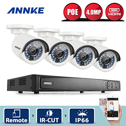-. Feature : 【True Plug & Play HIKI POE Security Camera System】You can setup the camera with the Ethernet cable only. No more power supply for camera and more convenient to run the system for your business and home. Video for how to install this ANNKE poe security system 【https://www.youtube.com/watch?v=ZJvWokRWzFY】 / 【Hight Compatibility NVR】 NVR supports up to 6MP recording and it is able to operate with third party cameras including ACTI, Arecont, AXIS, Bosch, Brickcom, Canon, ONVIF, Panasonic, Pelco, PISA, Samsung etc. / 【4MP WDR Mini Bullet Network Camera】Up to 30m IR range night vision and auto IR-cut; IP66 metallic housing and bracket / 【Smart Hard Disk Detection and Email Alert】Stable system with S.M.A.R.T hard disk bad sector detection, automatically firmware update capability and low-noise cooling fan. Smart email alert and powerful backup function,Support free Hikvision DDNS and EZVIZ cloud service. / 【H.264+ video compression¡¿ Save bandwidth for 70% than normal H.264; Virtual Host for easy IP camera setup and configuration