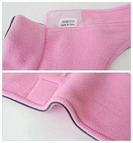 -. Feature : Material: premium polar fleece Soft, warm and comfortable. / Velcro closure. Easy to put on and take off. There are also two elastic bands for hind legs to fasten. / Hole in the neck for dog leash to go through. Convenient for you to walk your dog. / Suitable for small dogs, such as boston terrier, chihuahua, dachshund, etc. / Size Chart: please refer to the size chart in the picture list.