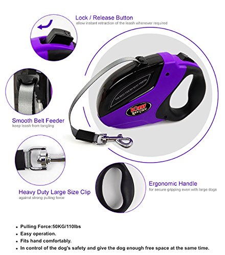 Studio : BLESSEY Publisher : BLESSEY Binding : Misc. Product Description Retractable Dog Leash is the only dog leash you need for your beloved pet. Walk at a pace that both you and your dog enjoy, keep retractable leash that way by pushing the button all the way down to lock the leash. Click the button back to slowly reel in your dog bit by bit. We know that your pooch could let its guard down and go free will from time to time. Strong and durable nylon ribbon extends 16 feet and is strong enough to pull dogs up to 110lbs. ABS casing and anti-slip comfort grip allows the greatest ease on your dog walk. Core spring is tough enough to handle extreme conditions that reach minus 86 Fahrenheit. Treat yourself and your pet with this retractable dog leash for the one-of-a-kind bonding time you and your pet delight. 0