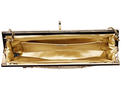 Product DescriptionSequin clutch with embellished frame and crystal closure.0