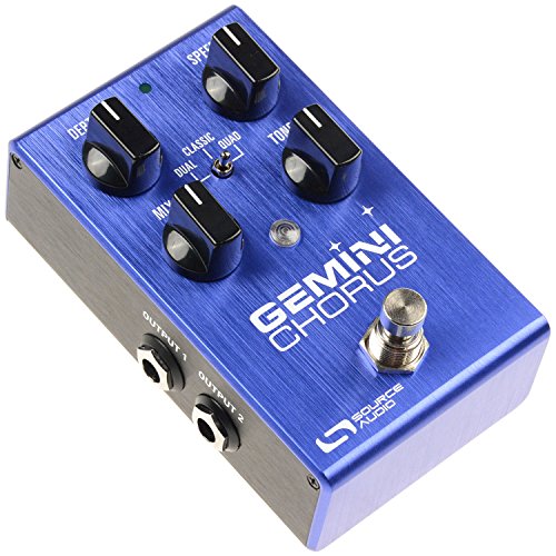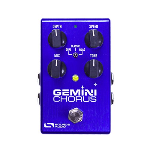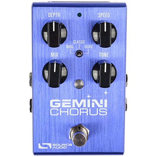 Studio : Source Audio Publisher : Source Audio Product Description Float away with the liquid, swaying effects of this amazing stereo chorus pedal. The Gemini Chorus offers three types of deep, hypnotic chorus. The Classic chorus creates a single voiced effect, conjuring the sought-after tones from the first wave of chorus pedals in the early 1970s. The rich Dual Chorus provides a smooth, yet animated double voiced chorus. The thick and lush Quad chorus recaptures a full-on 80s vibe, with a less than subtle, rack system sound. Once you ve found your chorus, dial in the sweet spot with the onboard Mix and Tone controls.