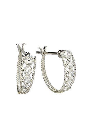 -. Title : [四葉のクローバー] 14金 フープピアス キュービックジルコニア 14k K14 ホワイトゴールド ピアス スナップピアス レディース 女性 :Ma578