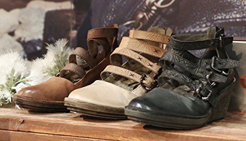 Product DescriptionThe Biker wedge is a refreshing casual that shows off multiple eye catching buckled straps and a rear zip for easy on and off. Zip closure Manmade lining Hammered ornaments.0