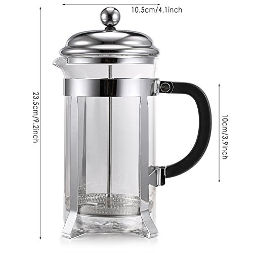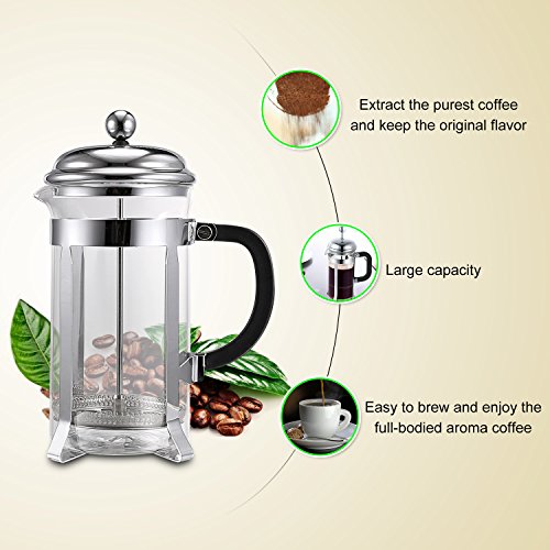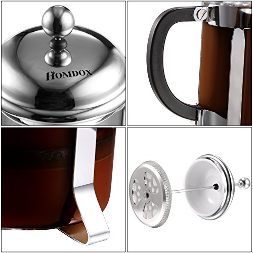 Homdox® French Press Coffee &Tea Maker Espresso with Heat Resistant Glass and Stainless Steel Plunger, 8 Cup (34 Oz)