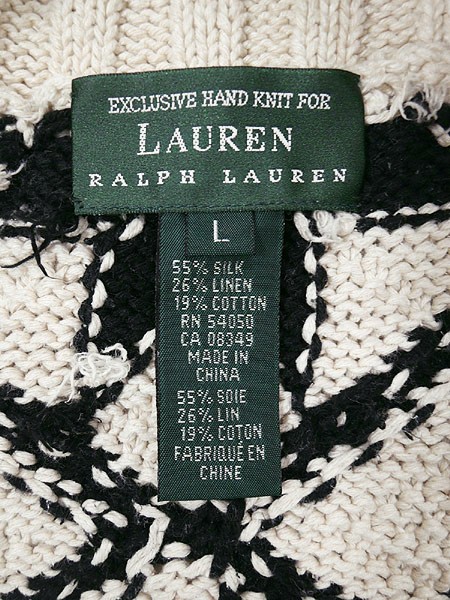 ブランドLAUREN RalphLauren ローレン ラルフローレン カラー白・黒 メール便不可 コンディション★★★ 素材シルク55%・リネン26%・コットン19% 表記サイズL スタッフコメントノルディック柄のコットンニット。 冬の時期にぴったりの一枚です! 実寸サイズ 着丈 57 cm 身幅 56 cm 肩幅 53 cm 袖丈 49 cm ※ウエスト・ヒップ以外は平置き採寸