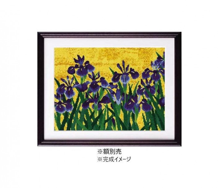 | 尾形光琳(おがたこうりん)筆18世紀前期。燕子花(かきつばた)図屏風から、およそ10年後に描かれたもの。燕子花の花が本来持つ可憐な美しさが際立つ六曲一双の屏風よりの部分。技法は、すべてクロスステッチを使用しています。技術レベルは、中級~上級者向です。 |