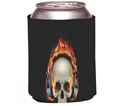 Rikki Knight "Skull on Fire Headphones Design" Beer Can Soda Drinks Cooler