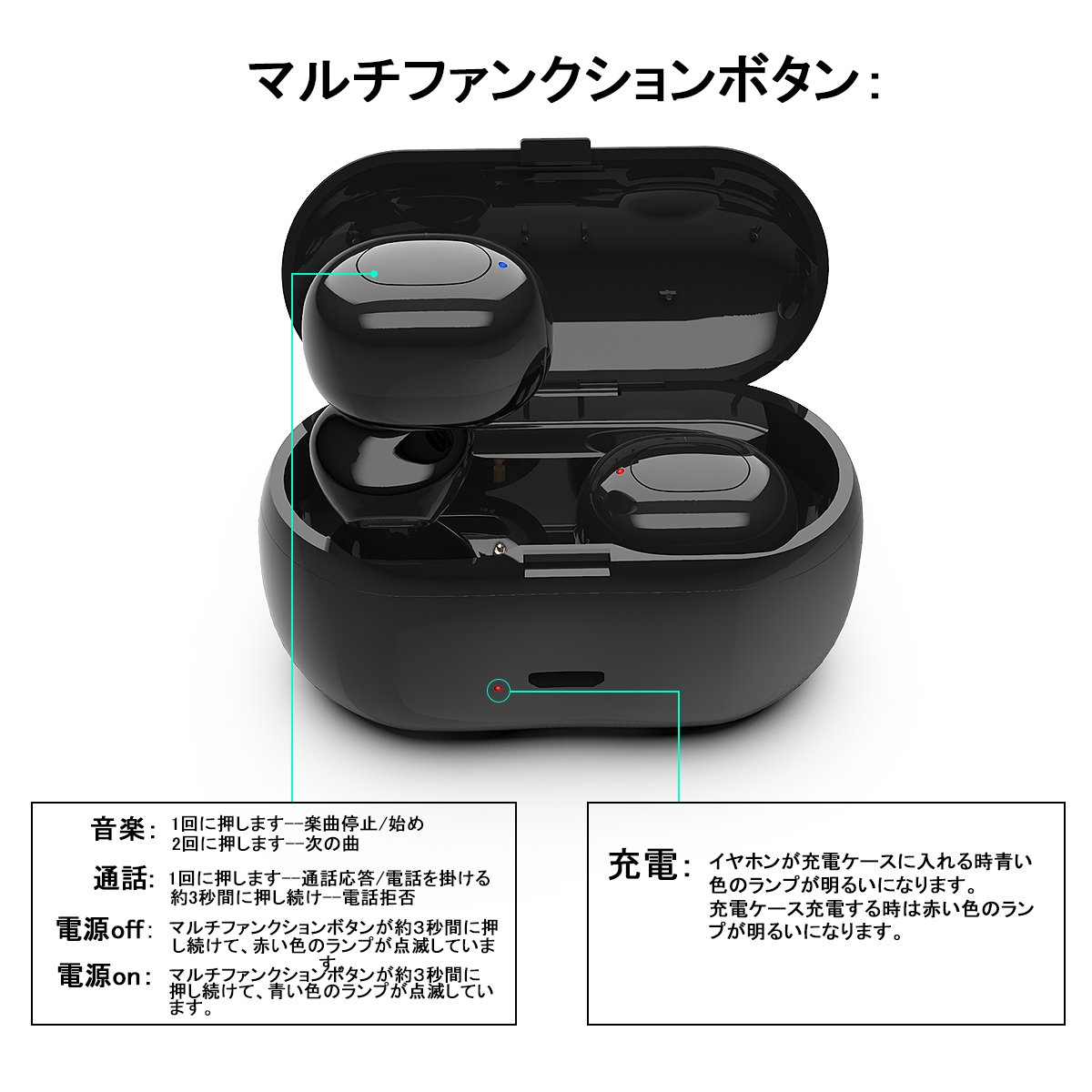 【簡単な操作】ワンボタンデザインで音楽再生/一時停止、通話開始/終了/拒否/リダイヤルなどの操作をすべて実現する。片手でワンボタンを便利で操作できる。