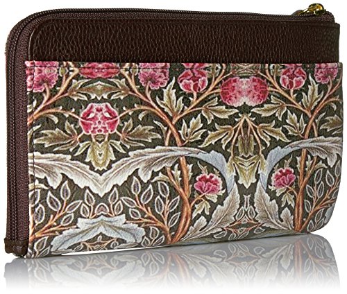Buxton Art Nouveau L-Zip Expandable Wallet with Removable Strap, Brown