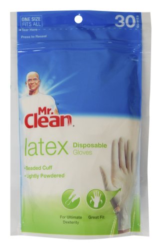 - Title : Mr. Clean 243060 Disposable Latex Gloves, One Size Fits All, 30 Pairs