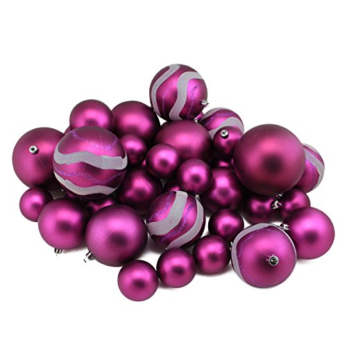 Northlight 39 Count Light Magenta Pink Matte and Glitter Shatterproof Christmas Ball Ornaments, 2"/4"