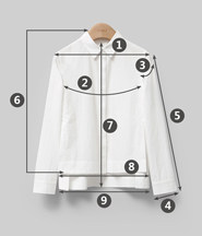 尺码 ①肩宽 ②胸围 ③袖臂围 ④袖口围 ⑤袖长 ⑥前衣长 ⑦后中长 ⑧前下摆围 ⑨后下摆围