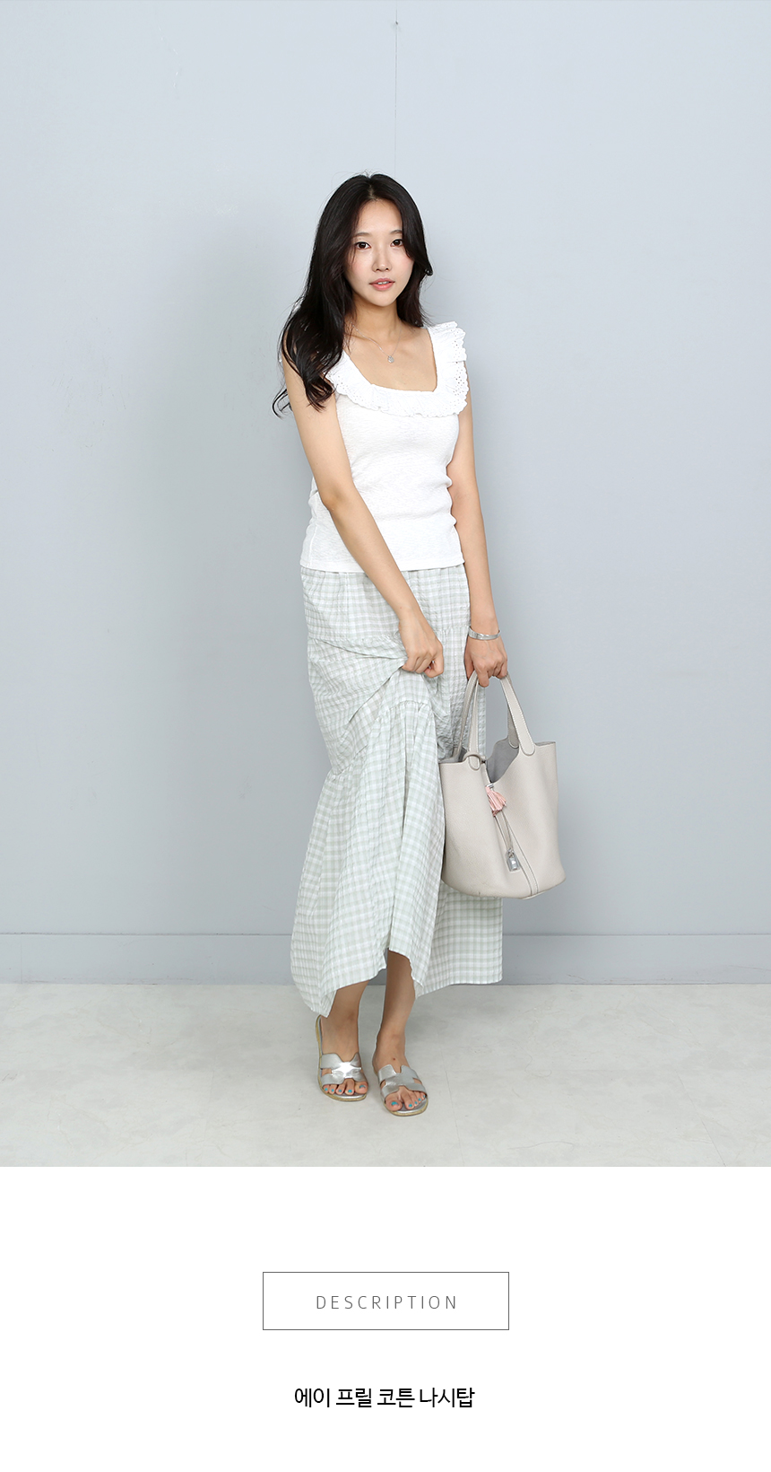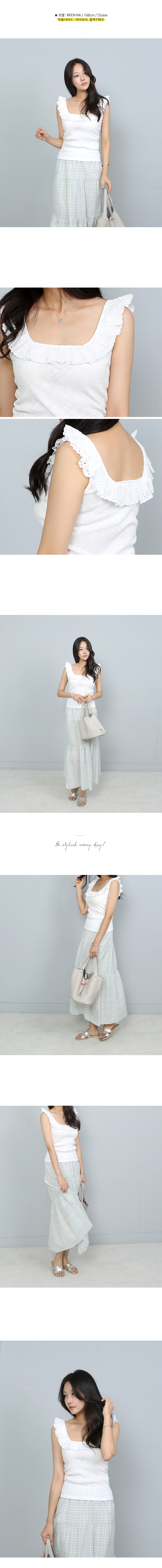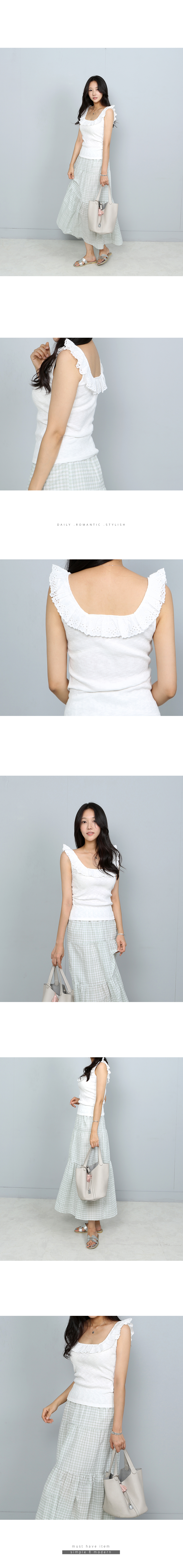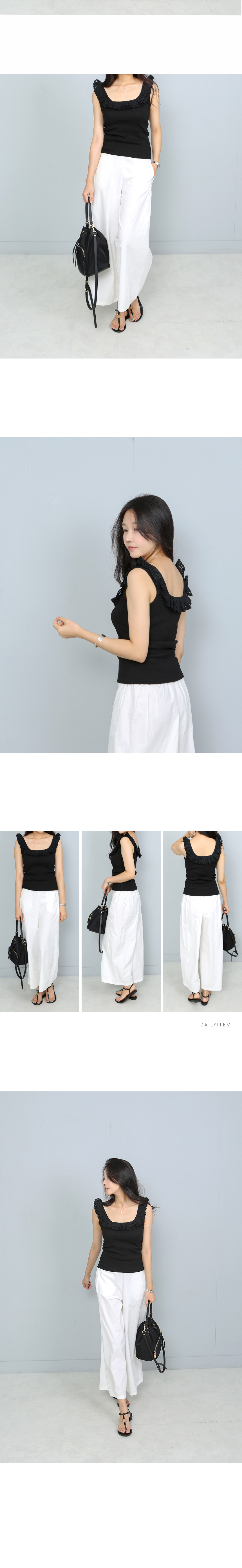 펀칭프릴 라인의 민소매 코튼 탑
