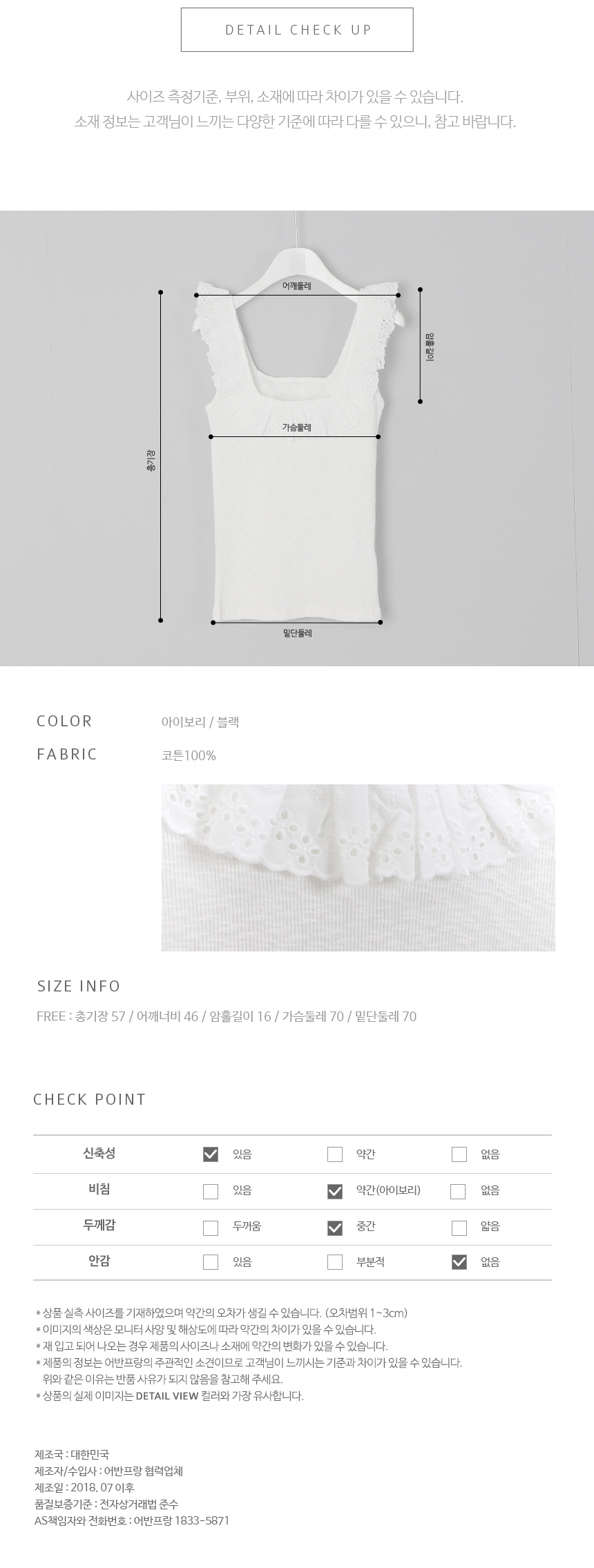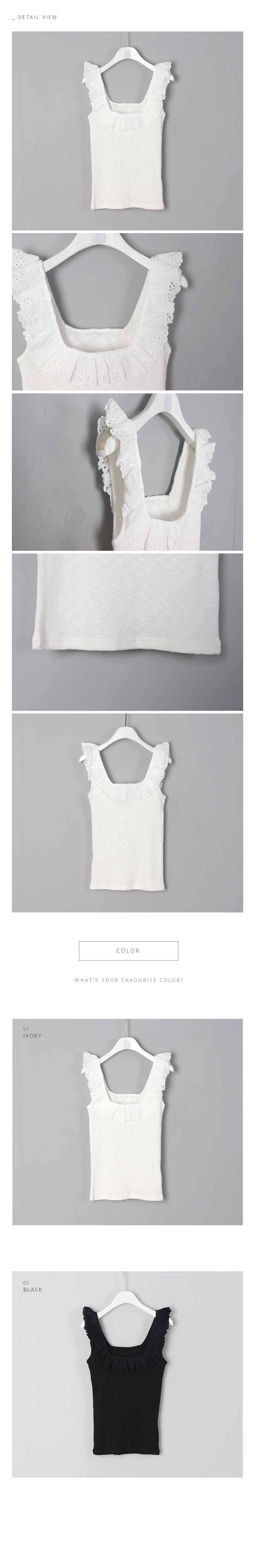 앞,뒤로 시원한 스퀘어 넥에 펀칭 소재 프릴로 포인트를 준