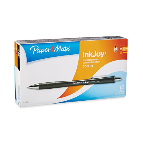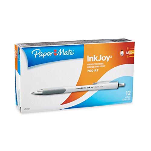 Paper Mate InkJoy 700RT Retractable Ballpoint Pen, Fine Point, White Barrel/Black Ink, 12-Pack (1887957)