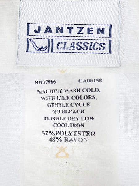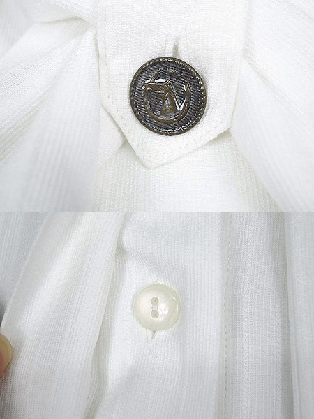 Ladies ブランドJANTZEN ジャンセン カラー白 メール便不可 コンディション★★★ 素材ポリエステル・レーヨン 表記サイズ記載なし スタッフコメントトップボタン、両袖ボタンにヨゴレあり。右スカーフ襟部分にヨゴレあり。 実寸サイズ 着丈 72 cm 身幅 59 cm 肩幅 51 cm 袖丈 59 cm ※ウエスト・ヒップ以外は平置き採寸