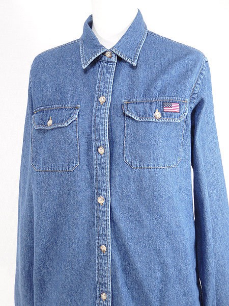 刺繍が入るデニム長袖シャツです。