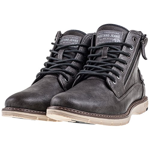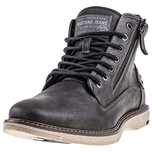 Binding : Apparel Product Description The Mens Lace Up Boot from Mustang combines a Synthetic upper with a durable Rubber sole. These Chukka Boots feature Lace-up fastening, cushioned insole and Textile Synthetic lining. Finished with Mustang branding, the style 4105-502-20 comes in a Dark Grey colourway. 0