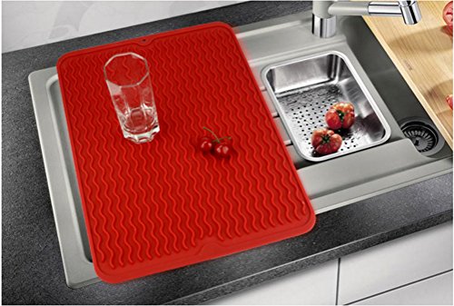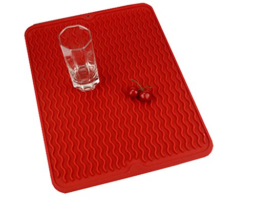 Swaroser Large Kitchen Silicone Dish Mats Heat Resistant Dry Mats 16 X 12 Inch (Red)