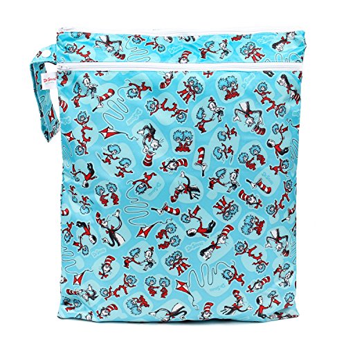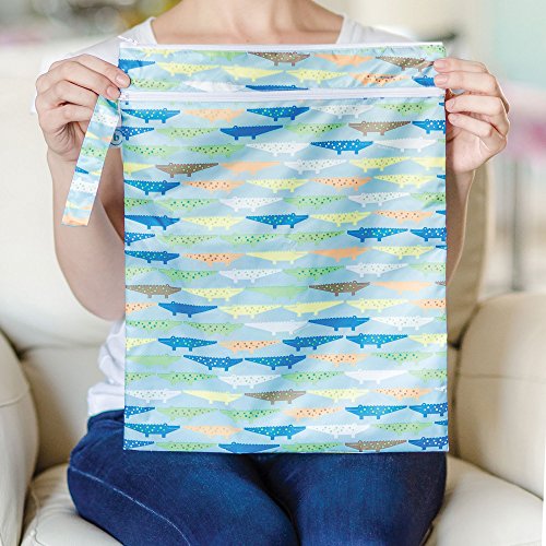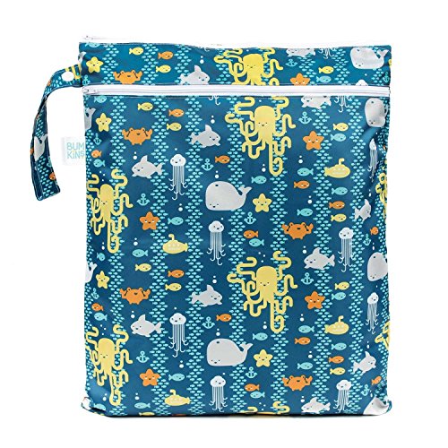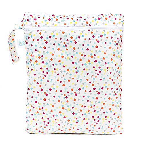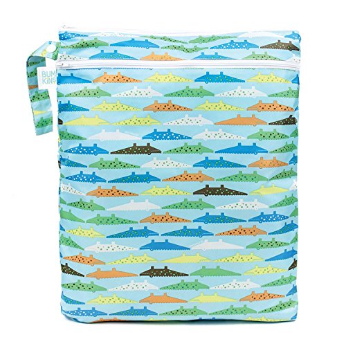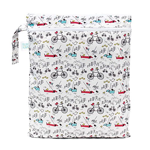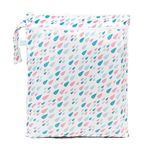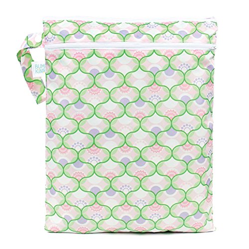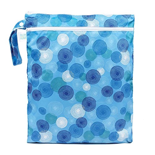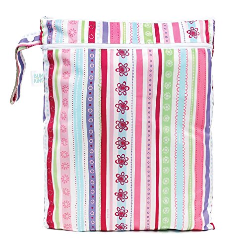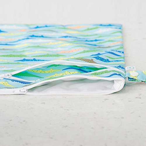 Bumkins wet and dry bags feature two waterproof compartments for separating your wet and dry items along with a convenient snap handle for hanging or carrying. The zipper closure helps keep items safely inside while the unique fabric keeps stains and odors out. Designed to be durable yet lightweight, these bags also feature fun fashionable prints. Measures 12"W x 16"L. Machine wash and hang dry.