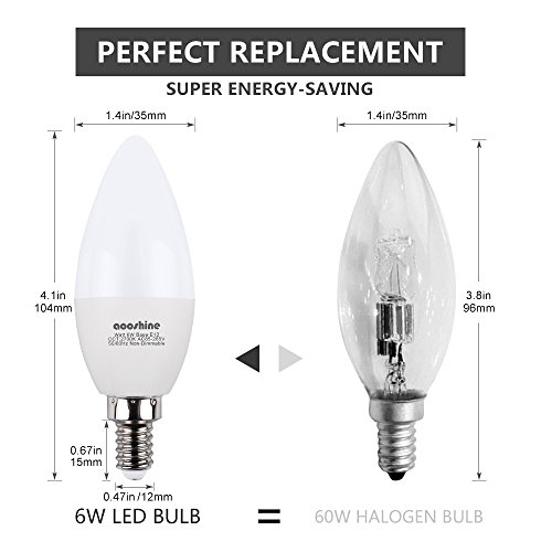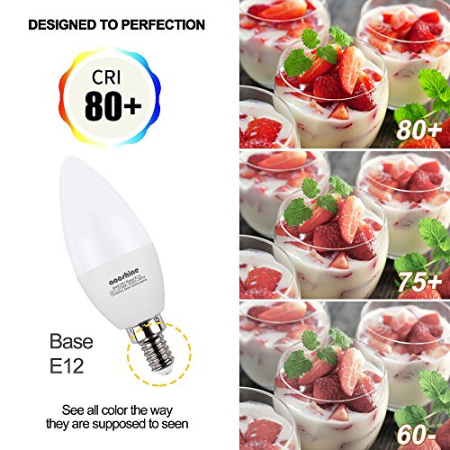 ▶ Features ?Super bright, excellent bright e12 led bulb. These 6W C37 bulbs are equivalent to the old 60W candelabra base globe light bulbs. ?Perfect to use at home, office, hotel, workplace, restaurant, internet cafes,ceiling fan light fixtures, chandelier, downlights etc. ?Thermal plastic cover with heat sink inside to remove harmful heat. ?2700-Kelvin lighting color gives a soft and peaceful feeling. ?High color rendering index (CRI 80 ) brings out the true color of objects around you. ?Reduces electricity costs; Reduces maintenance costs, Reduces cooling costs. ?Eco-Friendly. No lead or mercury. No UV or IR. Shockproof. ?Simple structure, easy installation.