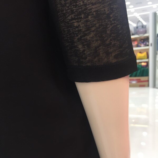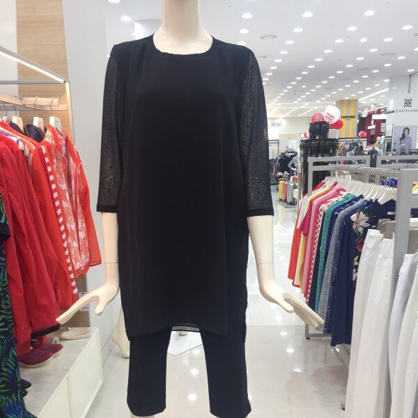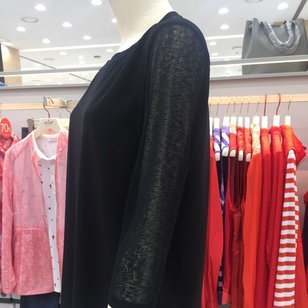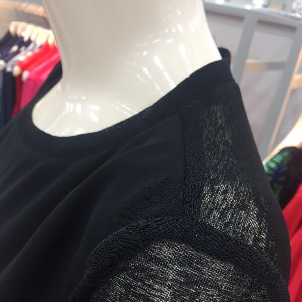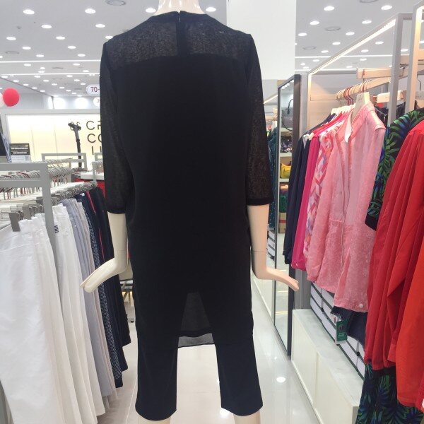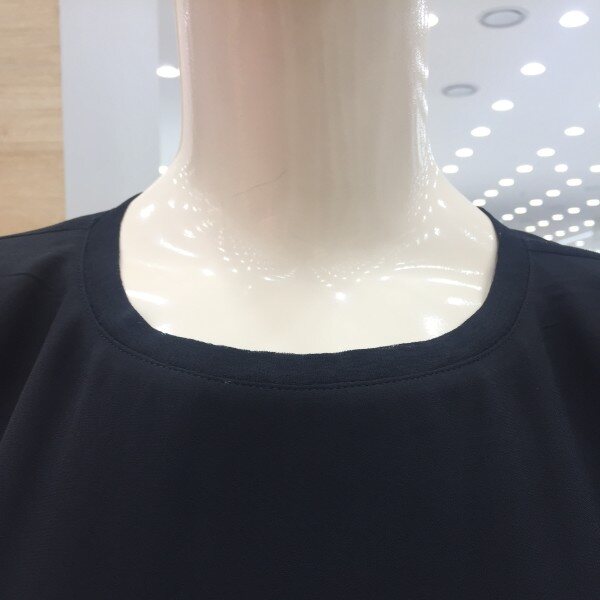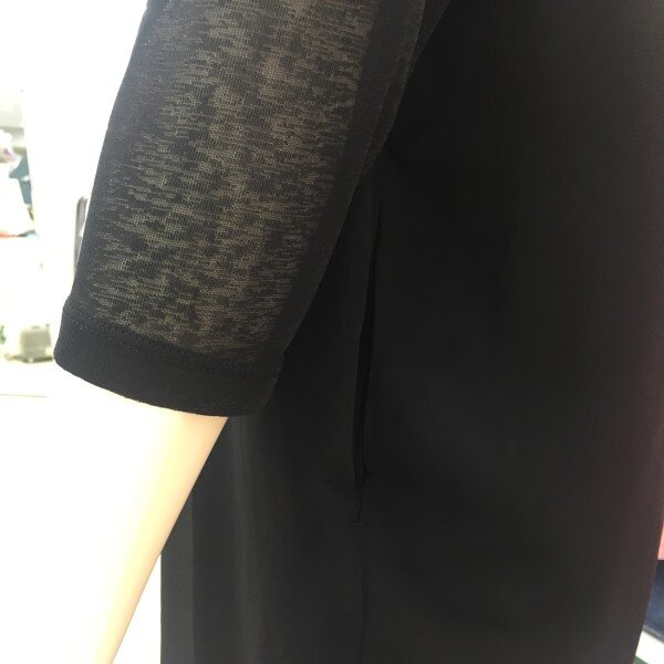 쉬폰의 까슬한 느낌이 나는 원사를 사용한 소재를 배색하여 통기성과 함께 시원함을 살린 소재로 바지와 가볍게 코디할수 있는 원피스 아이템
