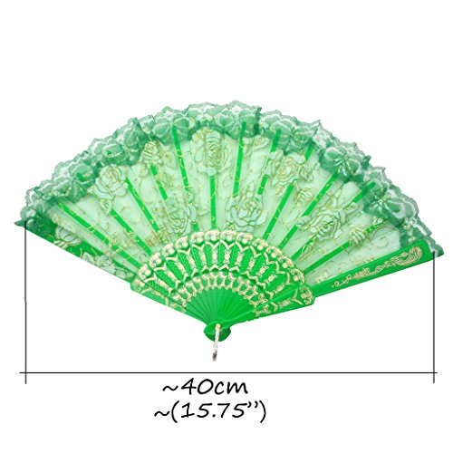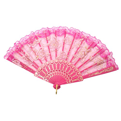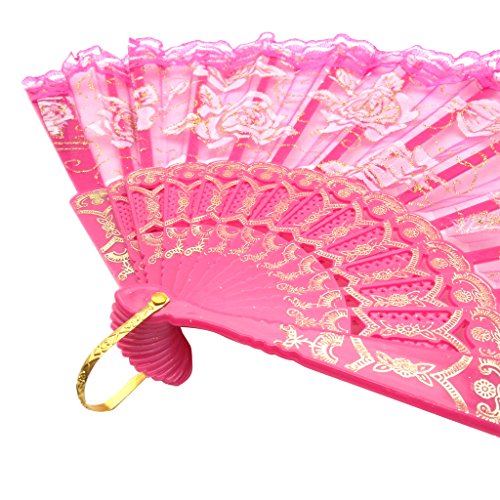TrendBox Elegant Vintage Retro Flower Rose Lace Handheld Chinese Folding Fan For Dancing Ball Parties Ladies - Hot Pink