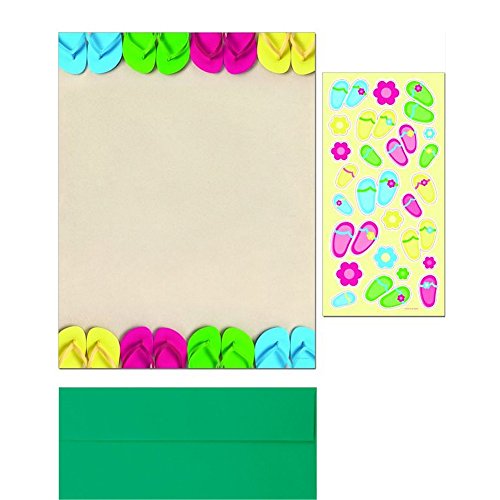 Studio : GP Publisher : GP Binding : Office Product Product Description This stationery set includes Bright Flip Flops Letterhead Sheets, coordinating Seals, and Bright Green No. 10 Envelopes. 8.5 inches x 11 inches. Inkjet and laser printer compatible. Acid and lignin free. Envelopes measure 9 1/2 x 4 1/8. 50 lb text paper. Pack of 80. Ground shipping is available for this item (Expedited shipping is not available). **Sorry, we are unable to ship this product to HI, AK, AE, Guam, Canada or Puerto Rico** 0