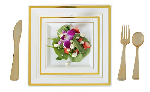 Plastic China Plate Silverware Combo Serving for 20 (115 piece set) IVORY / GOLD