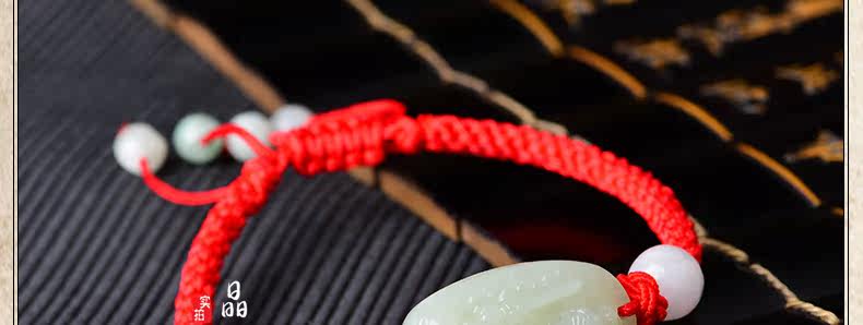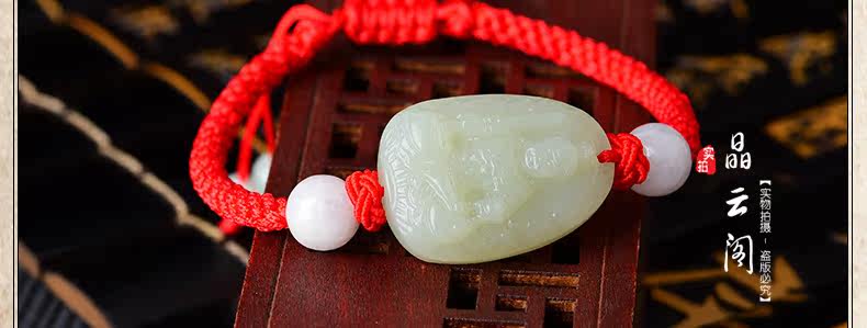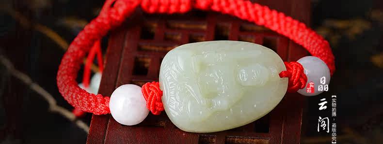 和田玉生肖本命佛红绳手链 不动尊菩萨生肖属鸡男女款手串