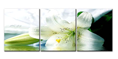 -. Title : Canvas Print Wall Art Painting For Home Decor Still Life Of Bright White Easter Lily Longflower Lily Flower In Full Bloom And Bud 3 Pieces Panel Paintings Modern Giclee Stretched And Framed Artwork The Picture For Living Room Decoration Flower Pictures Photo Prints On Canvas