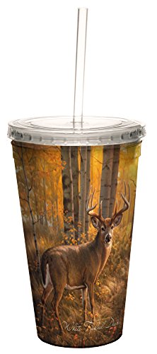 Tree-Free Greetings 35915 Greg Alexander White Tailed Deer Double-Walled Cool Cup with Reusable Straw, 16-Ounce