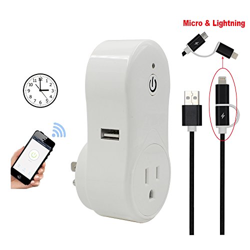 【3-in-1 Smart Plug】USB 2.1 Amp charging port is built in the socket with 1 piece of USB cable (dual function Lightning/Micro-USB) is included in the package to convenience your daily usage. CANNOT WORK WITH ALEXA; 2-Years Warranty