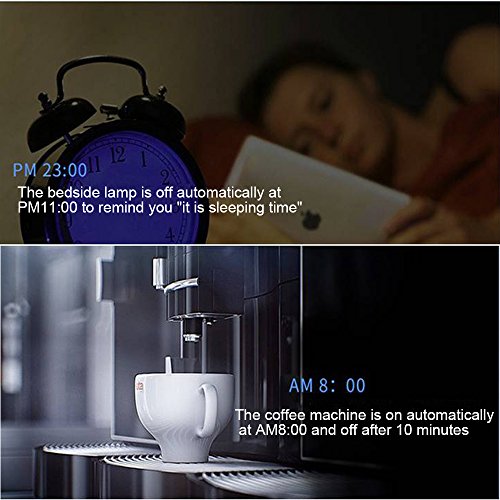 【PROGRAMMABLE TIMER】Create customized schedules to turn the devices’ on and off time. Such as programming at 6am with lamp on to remind you to get up or at 11pm with lamp off to remind you to sleep.