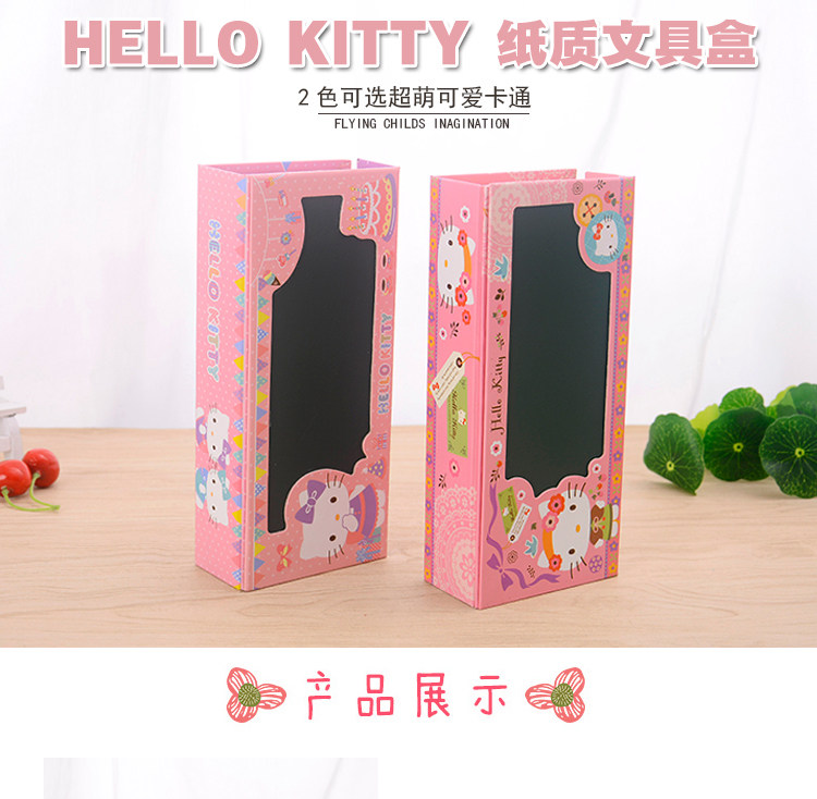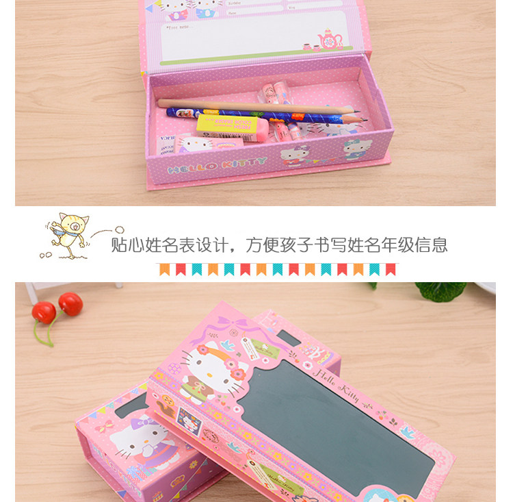 韩国创意小清新黑板笔盒kt猫纸质多功能小学生铅笔盒