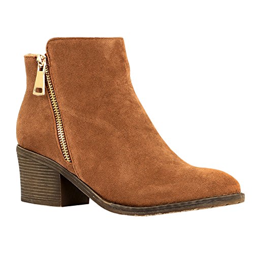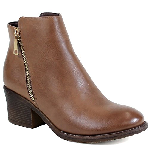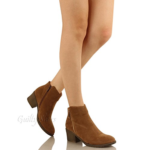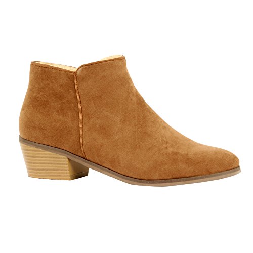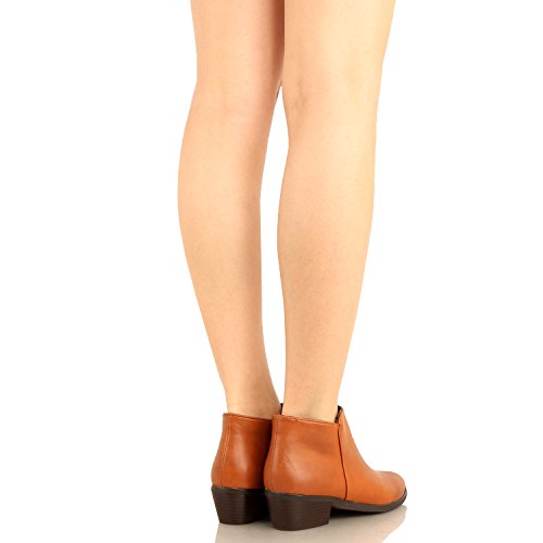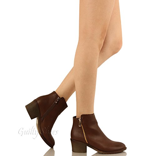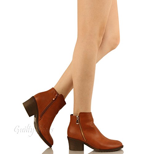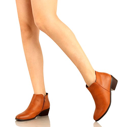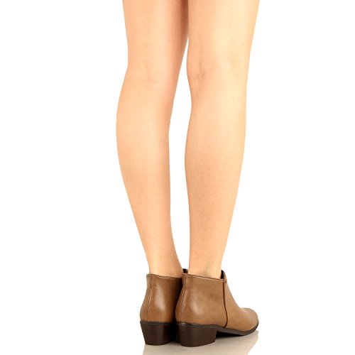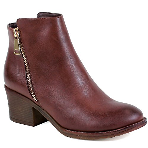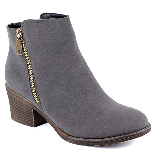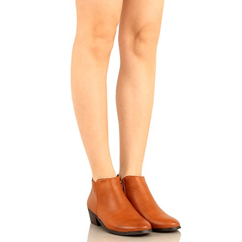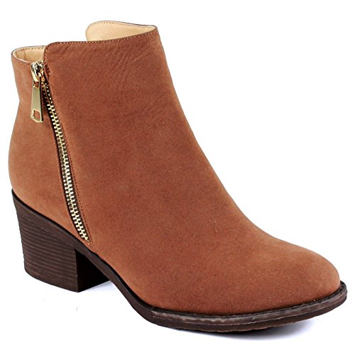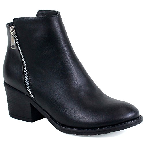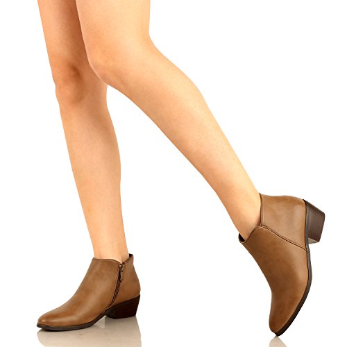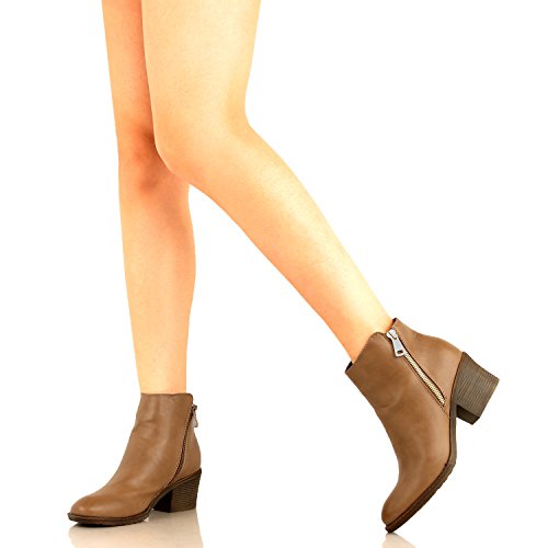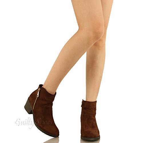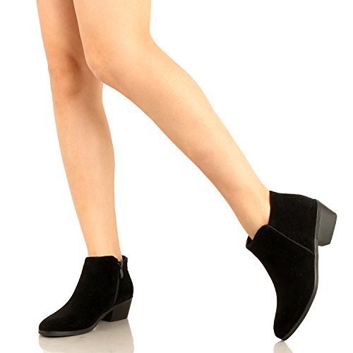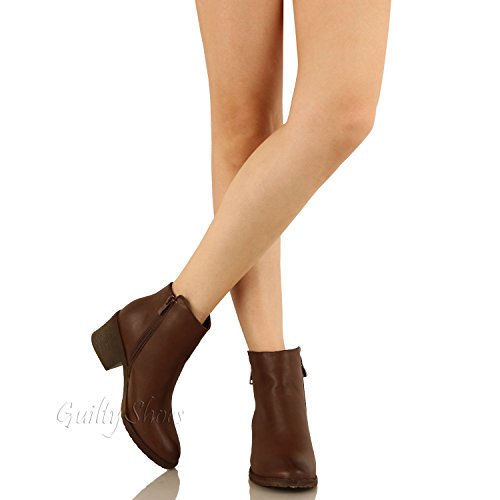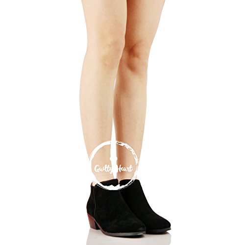 | Guilty Shoes - Women'S Stacked Chunky Heel - Side Zipper Pointy Toe - Comfort Western Ankle Boo... |